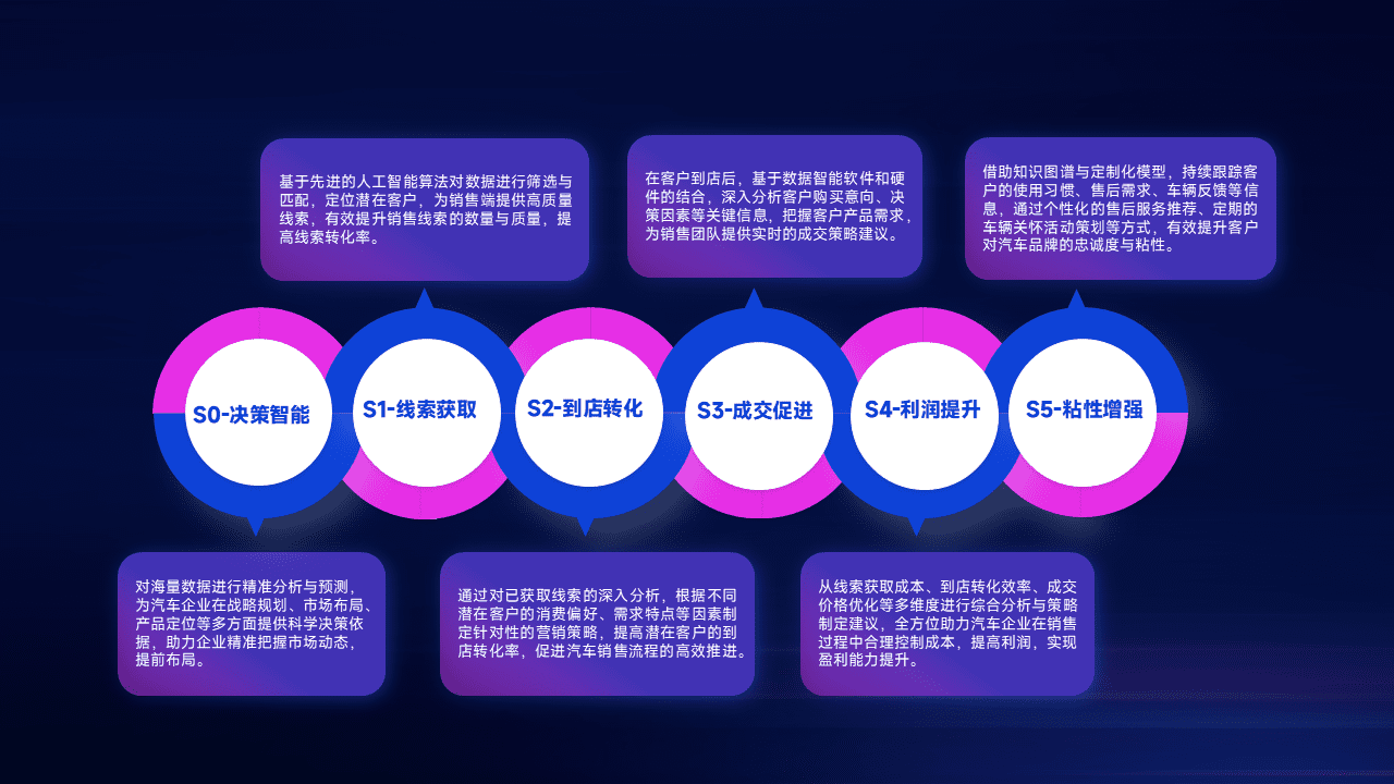 通过拓宽潜在客户来源、、、、优化线索分配并提高到店转化率,,,以增强销售效率。。。同时,,,,利用线索数据不断优化分析模型,,,,有效提升转化率,,,扩大营销影响力。。
